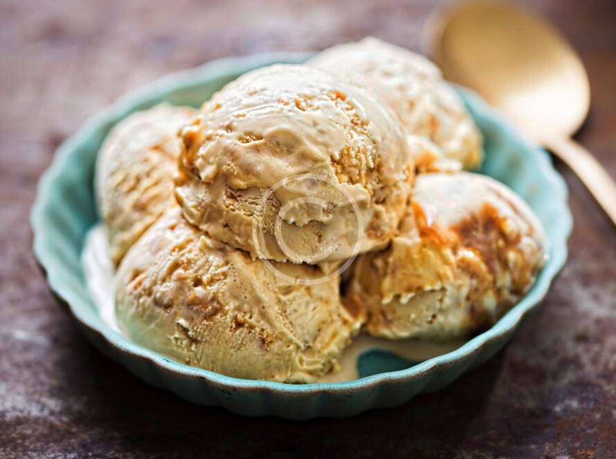 Fresh mint ice cream bowl with chocolate chips and lime juice